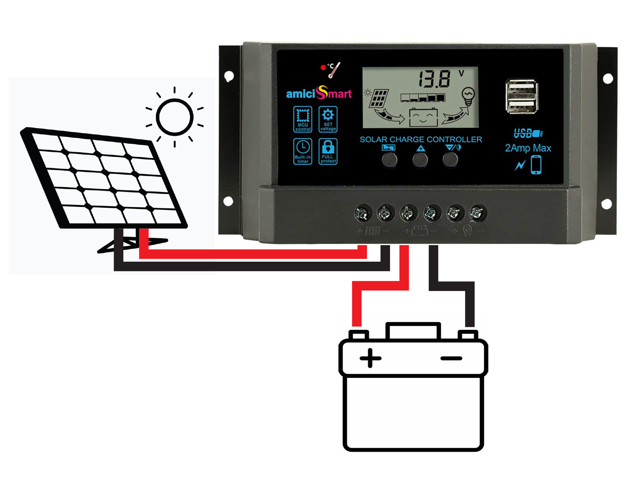 Solar panel according to Solar charge controller.